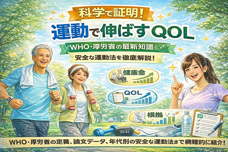 運動がどのように健康寿命とQOL(Quality of Life)に寄与するかを、WHOや厚生労働省の定義や最新のエビデンスに基づきわかりやすく解説します。