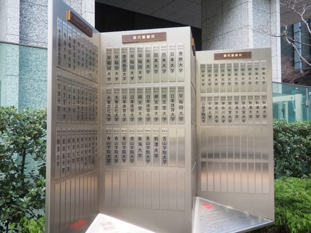 優勝回数ランキングの上位には中央大学、駒澤大学、青山学院大学、日本体育大学などが名を連ねます。